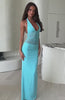 +30 loyalty pointsCreate the dreamiest look in the All My Love Maxi Dress Aqua! Features a halter neck design with hook and loop closure, low plunge sweetheart neckline, sheer bodice with ruching detailing, maxi length, backless, back split detailing, and stretch material.