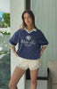 I'm nicer when I like my outfit. The Along The Way Oversized Jersey in Navy brings effortless cool to your wardrobe. Features a relaxed V-collar neckline and short sleeves with sporty stripe detailing at the cuffs. The centre front is embroidered with White Fox text paired with a rose graphic for a stylish statement. Designed with an oversized silhouette that’s perfect for laid-back days, and finished unlined. Style with a mini skort and your fav trainers for a sporty yet chic look!