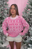 Cosy meets cute under the mistletoe. The Arctic Fire Knit Sweater in Baby Pink is designed with slouched shoulders and ribbed hems, which round out an oversized silhouette. Featuring long sleeves and an unlined knit fabric. Finished off with White Fox text centre front and back, paired with a Christmas-inspired design. Style with your go-to denim jeans, slippers and layered gold jewellery for a cosy Christmas Day look!