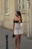 +50 loyalty pointsThe Bliss Mode Mini Dress in Cream/Black Polka Dot is made for Paris moments! This off‑the‑shoulder beauty features structured bust cups with under‑wire support, a centre‑front floral accent, a fitted bodice that skims your shape, a godet skirt for subtle volume, full lining, and an invisible back zipper with hook‑and‑eye closure for a seamless finish. Style with kitten heels and a handle bag for an elegant fit.