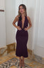 +55 loyalty pointsThe kind of dress you’ll want to wear long after the party’s over. The Champagne Rush Midi Dress Plum features a halter neck design with an ultra low cowl, plunge neckline, backless design, attached flower detailing, lined material and stretch for an easy slip-on design. Add high shine accessories and perspex heels for a show-stopping look!