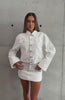 Double up your denim collection with the Charlotte Denim Jacket in Off White. Featuring a collared neckline, front button up closure, two front pockets, cropped length, long sleeves with folded cuffs, and unlined, denim material. We can't get enough of these styled with the matching Charlotte Denim Mini Skirt in Off White.