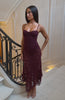 For strolls along the Arc de Triomphe, the Darling Girl Midi Dress in Port is your go-to! Featuring thin adjustable straps, a sweetheart neckline with built‑in bust cups, a fitted bodice, and an asymmetrical hemline, a built-in mesh bodysuit and discreet back zipper and hook‑and‑eye closure for a seamless finish. Style with clear heels and paired back earrings for an effortlessly chic look.