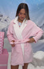 Layer your Christmas PJs with the Dial Tone Fluffy Robe in Baby Pink. This cozy essential features a soft, collar neckline, long sleeves, side pockets, a contrast lapel, and a tie-up closure all in a plush, fluffy fabric. Perfect for throwing over your fave festive PJs with socks and slippers for extra holiday warmth.