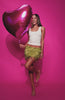 When the invite says ‘dress to impress,’ the Disco Baby Beaded Mini Skirt in Chartreuse nails the brief. Featuring a thin waistband with side zipper and clasp closure, mesh-lined material, mini length and paillette sequin embellished material for a high shine finish. Style with a basic white tank top to let the skirt do all the talking!