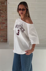 +35 loyalty pointsBRB adding to cart! The Everything In Time Off‑Shoulder Oversized Tee in White features a relaxed, oversized fit with slouchy shoulders and an off‑the‑shoulder neckline, punctuated by a bold printed logo at center front. Pair it with a sporty skort and sneakers for a chic, effortless look.