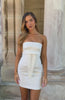 +40 loyalty pointsAll i want for Christmas is the Gilded Nights Strapless Mini Dress White! Features a strapless neckline with internal grip-tape, an under-bust seam and a bold centre-front bow that adds instant drama. The fitted silhouette hugs your curves, while the side zipper with hook-and-eye closure and full lining ensures a flawless finish. This dress pairs perfectly with sky-high heels and layered gold jewellery for a festive, polished look.