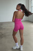 Matcha run fit! The Grit Seamless Active Tank in Dragonfruit features halter neck design, built in bra with removable padding for a supportive fit, unlined, stretch material that moves with your body, and open back design. Pair with the matching active bottoms for your next sweat sesh look!