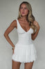 Float through summer in the Guessing Games Mesh Mini Dress in White! Features thick straps, cheeky v-neckline, feminine drop waist design, frill skirt, lined and stretch fabrication for any easy slip on and off. Embrace your girly side by pairing with kitten heels and layered gold jewellery for a look we love!