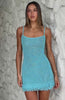 +50 loyalty pointsGo from beach to bar in the Keeping Me Awake Knit Mini Dress in Aqua. Features thin adjustable straps, square neckline, unlined, sheer, mini length, stretch material for an easy slip on design and frayed hem detailing. Style with kitten heels and a statement necklace for a look that's sure to turn heads!