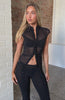 +35 loyalty pointsFlirty, fitted and fabulous! The On My Own Wave Top in Black is designed with a turtleneck and short sleeves, it offers a fitted silhouette that enhances its elegant appeal. The sheer, unlined fabrication adds a delicate touch, while the hook-and-eye closure down the center front provides a subtle yet alluring detail. Style with the matching On My Own Wave Pants Black for a look we love.