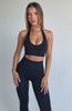 Introducing the Pace Seamless Sports Bra in Black, your daily active essential. Designed with a fixed halter strap, scoop neckline, ribbed elasticated under bust hem and removable padding for customizable comfort. Finished with WFA initials at the centre back and crafted from soft, seamless fabric. Style with the matching Charge Seamless Leggings or Zoom Seamless Shorts 4" for a flawless active fit.