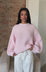 Snuggle season starts now. The Pure Comfort Knit Sweater in Baby Pink is your go-to cozy layer. With a scoop neckline, slouched shoulders, and long sleeves featuring bishop cuffs, it offers a relaxed, oversized fit. The thick knit and ribbed waistline adds texture and warmth, making it perfect for layering on chilly days. Style with your go-to White Fox denim jeans and layered gold jewellery for a cute and cosy fit.
