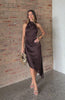 +70 loyalty pointsThe Sealed With Love Midi Dress Espresso is your invitation to stand out. Featuring a high cut neckline with a halter neck design and back self tie straps, midi length with an asymmetrical hemline and backless design. Style this vacation essential with thong heels and layered gold accessories for a stand out look!