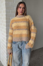 +55 loyalty pointsBrighten up your winter wardrobe with the Soft Embrace Knit Sweater in Honeycomb Stripe! This relaxed‑fit sweater features a cozy high neckline, drop shoulders, long sleeves with ribbed cuffs, and a striped knit pattern with ribbed hem and neckline details. Style it effortlessly with your favorite denim and layered gold jewellery for a chic, warm look.