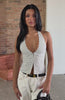 Our new obsession: the Stunner Edition Halter Top in White/Black Polka Dot. Featuring halter straps, ultra-low V-neckline, backless design, cropped silhouette, full lining, and a front hook-and-eye closure. Pair it with your favorite denim and sandals for the sweetest, effortless look.