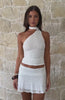 +35 loyalty pointsDouble the fun with the cutest set by your side! The Sweet As Pie Top White features a built-in neck tie design, one shoulder detailing, backless, side ruched detailing and stretch material. Pair with the Sweet As Pie Mini Skirt White for the cutest matching moment!