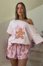 The Sweetheart Pyjama Short in Gingerbread Twist adds a festive touch to your bedtime routine. Designed with a thick elasticated waistband, self-tie drawstring and Christmas inspired pattern. The straight-leg cut and unlined, lightweight material provide breathability and ease. Pair it with the Sweetheart Pyjama Off Shoulder Tee Soft Pink.