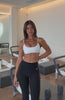 The CEO of Pilates princesses in the Swing Seamless Sports Bra in White. Features thin adjustable shoulder straps, a flattering scoop neckline and open back, removable padding, and supportive under‑bust elastic. Style with the active bottoms and your favourite pilates socks for a perfectly coordinated look.