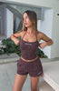+35 loyalty pointsLounge lovers are going crazy for the Test Drive Lounge Shorts in Chocolate! Designed with a thick elasticated waistband featuring an internal drawstring tie, side pockets, and a relaxed silhouette. The White Fox puff print metallic text at the side adds a signature touch, while the unlined fleece interior ensures a cozy feel. Style with the matching Test Drive Oversized Sweater.