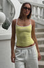 +25 loyalty pointsPOV: you found the perfect lounge set. The Verano Sixteen Giulia Singlet Top in Lemon features thin adjustable shoulder straps, a square neckline, and puff-print White Fox text at the centre front. Designed in a soft, high-stretch fabrication and finished unlined for all-day comfort. Style with the Verano Sixteen Carmen Shorts and sneakers.